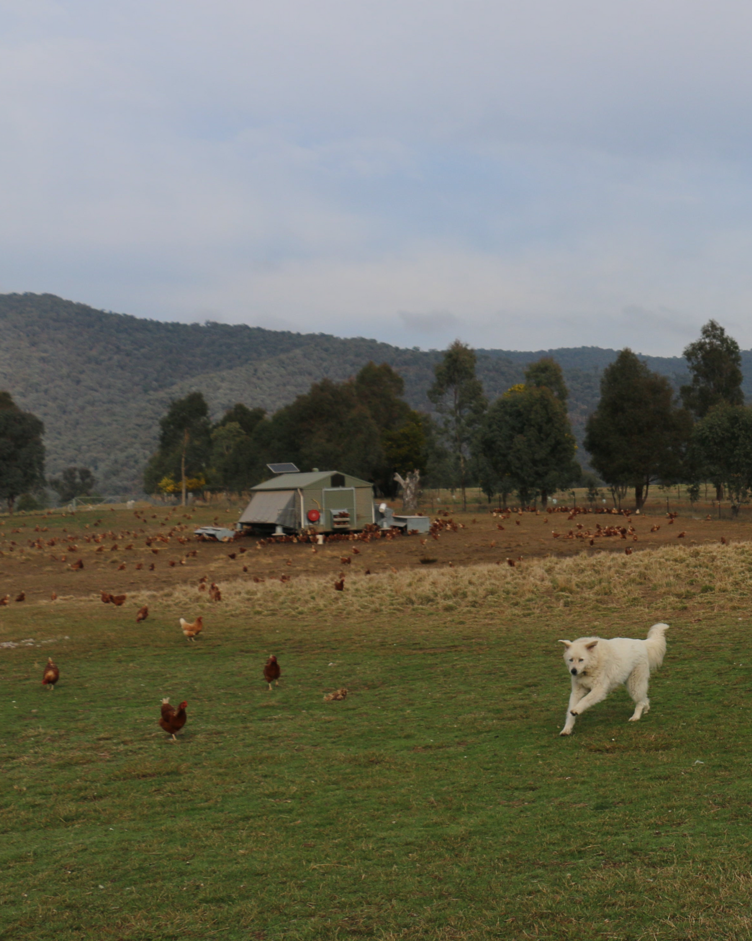 Our hens roam free over more than 100 acres of land, protected by our team of Maremma dogs.